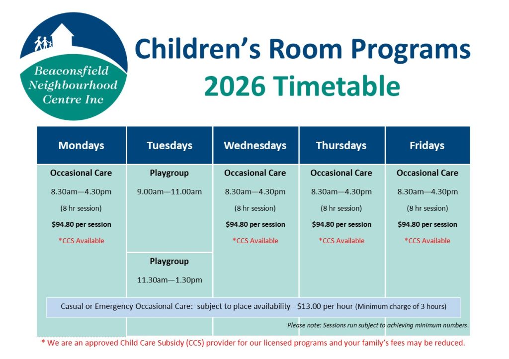 Children’s Room Timetable
